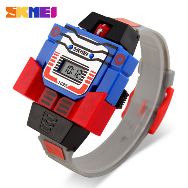 New Children Watch Creative Cartoon Robot Transformation Toys LED Digital Clock kids Watches For Boys Girls Child Clock 2019