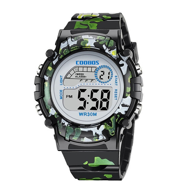 Navy Blue Camouflage Kids Watches LED Colorful Flash Digital Waterproof Clock For Boys Girls Date Week Creative Children's Watch
