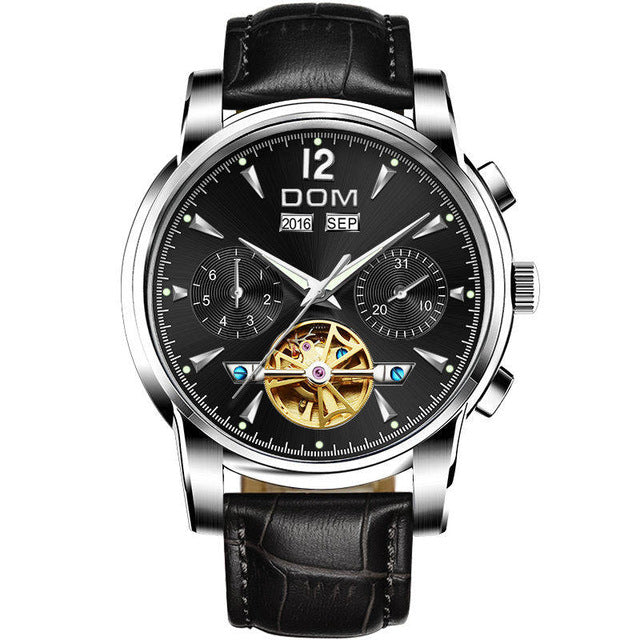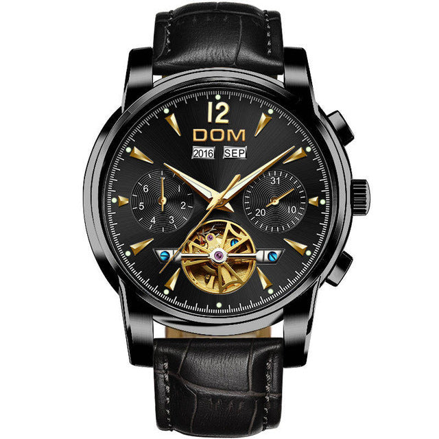 DOM Mechanical Watch Men Wrist Automatic Retro Watches Men Waterproof Black Full-Steel Watch Clock Montre Homme M-75BK-1MW