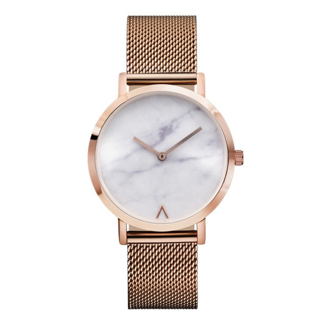 Eutour Rose Gold Ultra Thin Bracelet Women's Fashion Watch Hot Ladies Minimalist Design Marble Clock Quartz Wristwatches