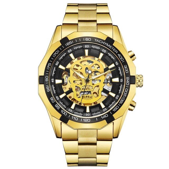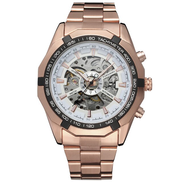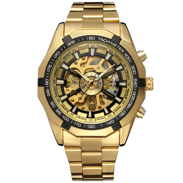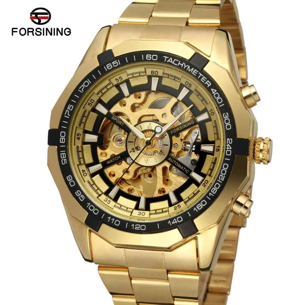 Sport Racing Series Skeleton Stainless Steel Black Golden Dial Forsining Top Brand Luxury Watches Men Automatic Watch Clock Men