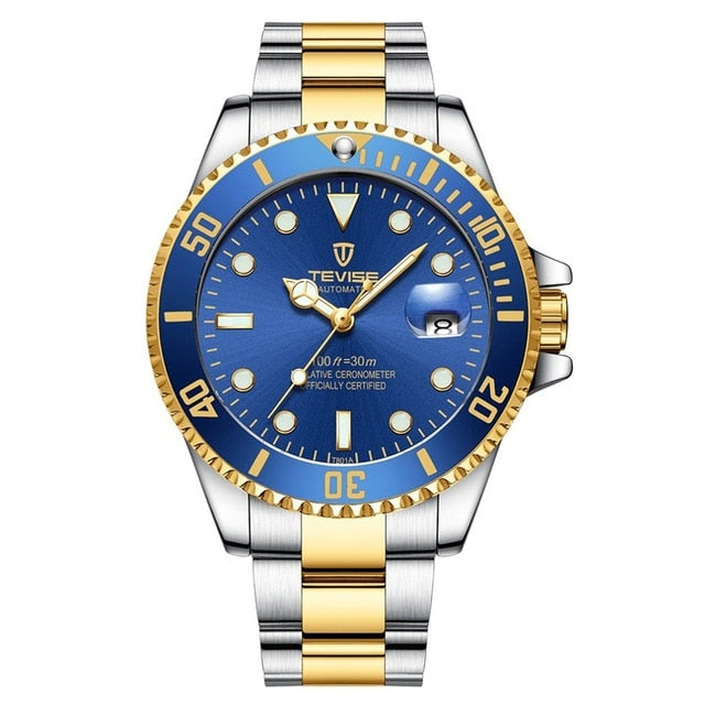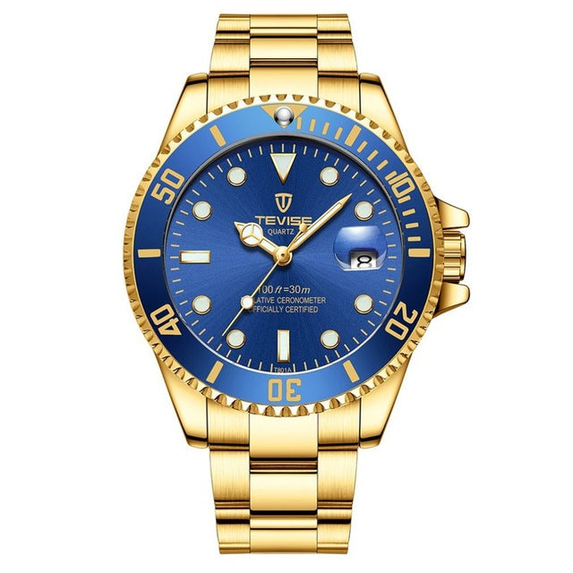 Tevise Watch Green Water Ghost Quartz Watch Top Brand Luxury Fashionable Non-Mechanical Men'S Watch Spiral Crown Watch Free Box